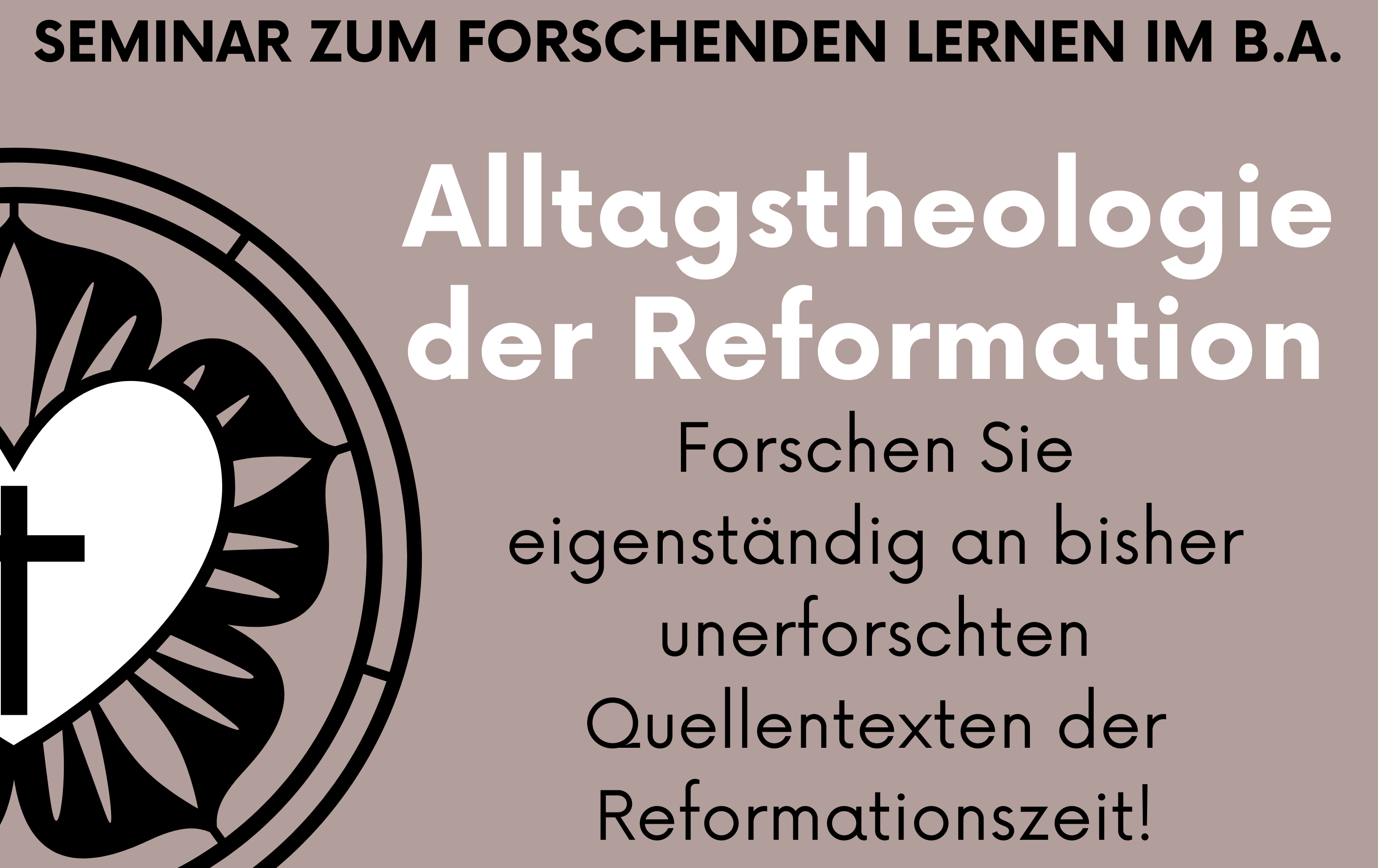 Der Lehrstuhl für Reformation und Kirchengeschichte lädt alle Studierenden des B.A. evangelische Theologie herzlich dazu ein, sich im Rahmen dieses Seminares als Historiker*innen auszuprobieren und eine eigenständige Forschungsarbeit auszuarbeiten. Im Vordergrund steht dabei nicht die Erforschung großer theologischer Entwürfe oder historischer Figuren, sondern die Erschließung der Alltagstheologie des Volkes zur Zeit der Reformation.