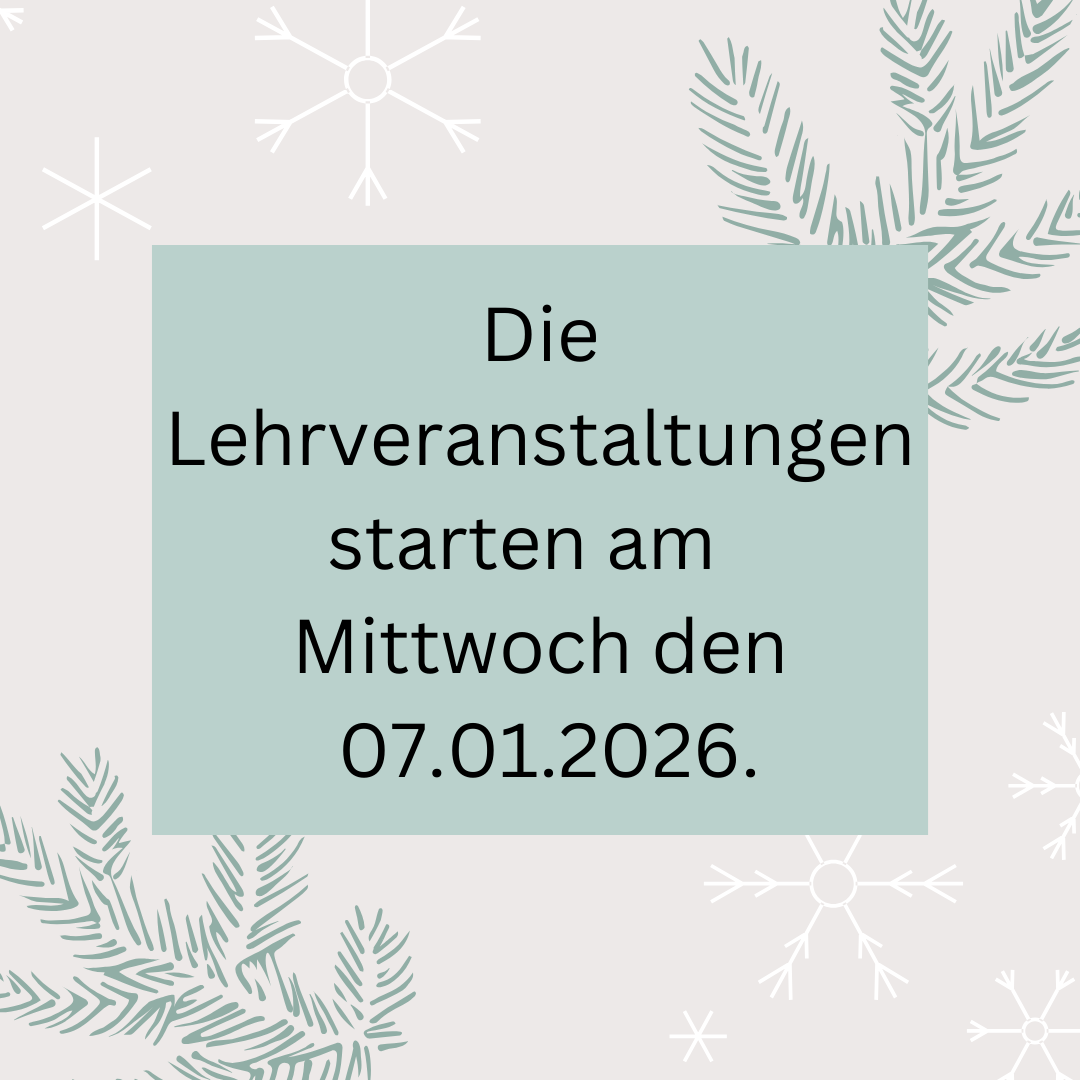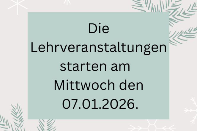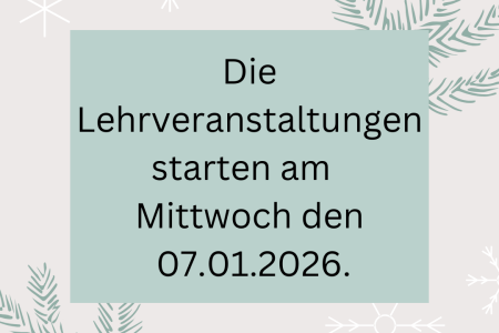 Beginn der Lehrveranstaltungen: 07.01.2026.